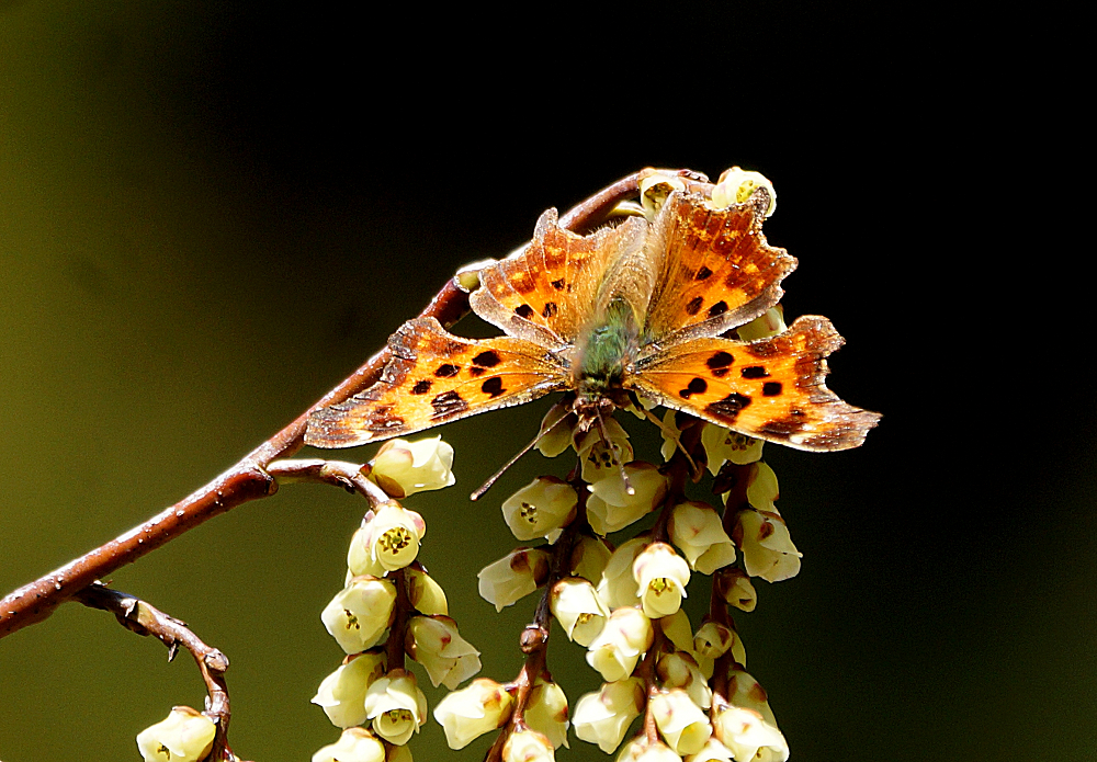 暖かくなると羽化した蝶が飛び交うようになります。 キアゲハがヒメオドリコソウに飛んで来て吸蜜しています。 スジグロシロチョウやベニシジミも見られるようになりました。 ミヤマセセリも羽化し地面で翅を広げて日光浴をしていました。 キブシではルリタテハやシータテハが吸蜜しています。 蝶はキアゲハ、ミヤマセセリ、スジグロシロチョウ、ベニシジミ、ルリタテハ、シータテハ、キタキチョウと続きます。 お終いはイカリモンガ(蛾)です。