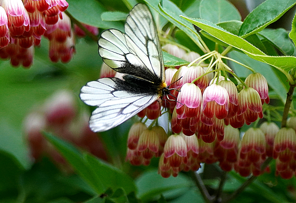 ウスバシロチョウは十日前に行ったとき、ハルジオンが未だ咲いてなく吸蜜する花はサラサドウダンだけでした。 もうそろそろ咲いているころと思い行ってみました。 しかし、咲いていたが殆ど止まってくれません。 ほかに花がないか探しましたが吸蜜すような花はありません。 そうこうしているうちに交尾を見つけました。 三頭でもみ合いになっていたが一頭が脱落しました。 ここでは十数頭観察されます。 お終いはサラサドウダンとクリンソウです。