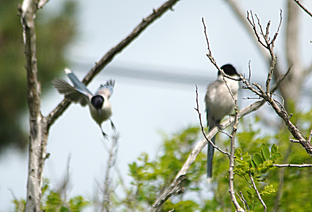 オナガの鳴き声がしたので探しました。 声がするけど姿が見えません。 暫く待ってみると木々の中から姿を現しました。 鬱蒼と茂った中でどうやら食べ物を探していたようです。 数羽が観察され久々に撮れて良かったです。
