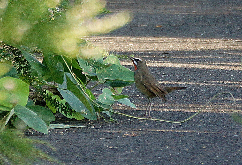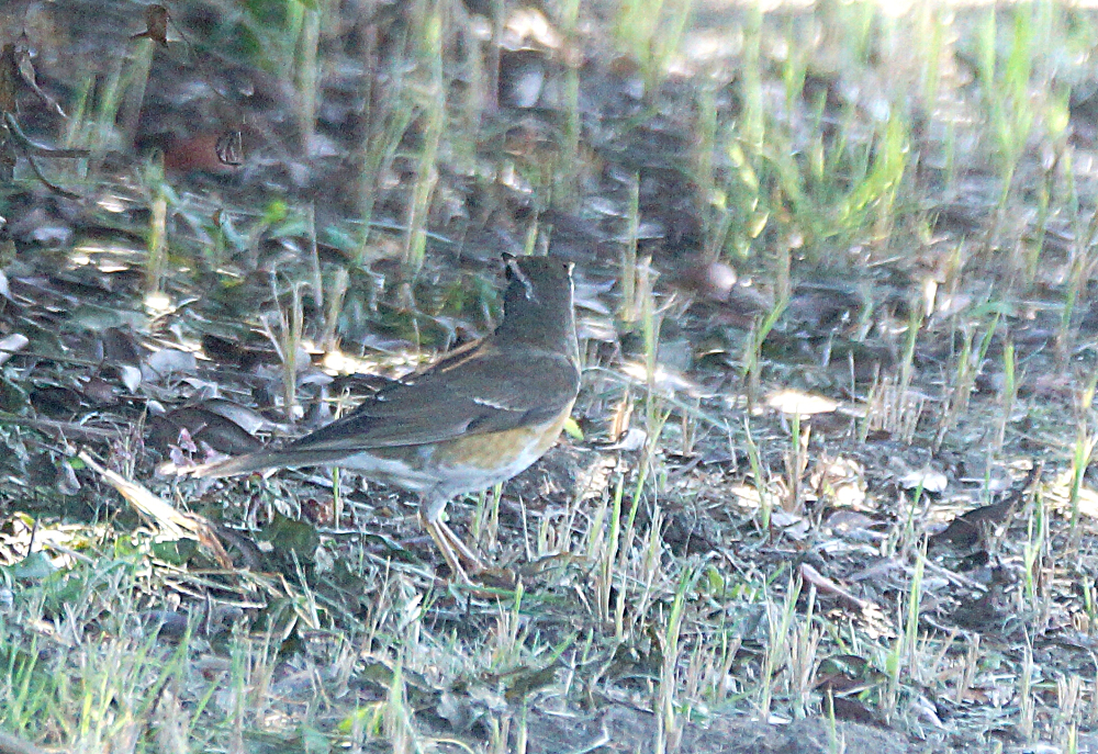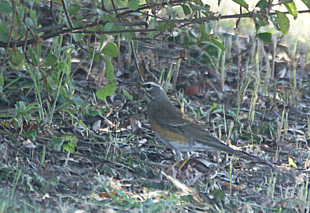 散策路を歩いていたらノゴマがいました。 一瞬で直ぐ藪の中に逃げられました。 今回でここでは二度目です。 また、植え込みの中でマミチャジナイが餌を探していました。 薄暗く上手く撮れませんがここでは初めての観察です。 ノビタキがフェンスに止まりました。 アカゲラが木を突っついていました。 この時期は公園などで色々な野鳥に出会えます。 ノゴマ、マミチャジナイ、ノビタキ、アカゲラ、モズと続きます。
