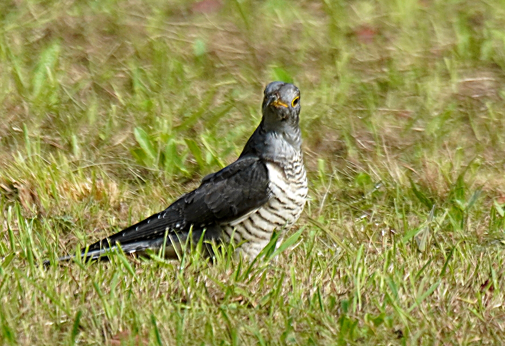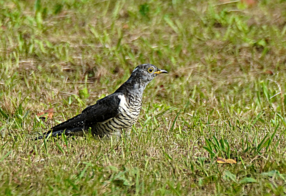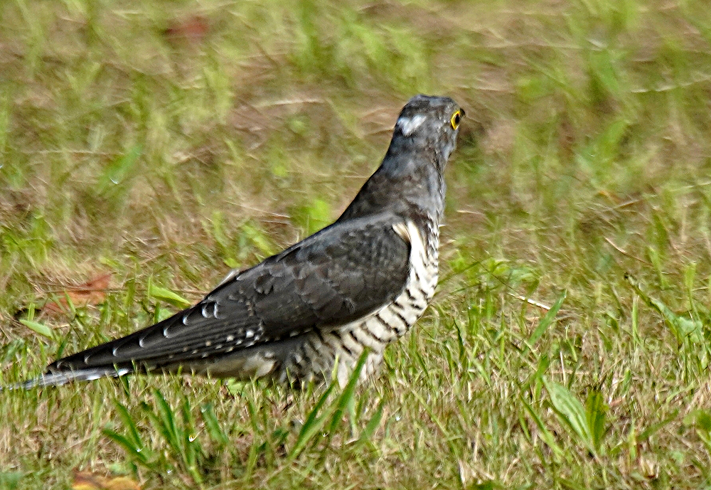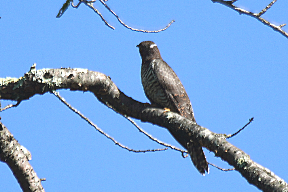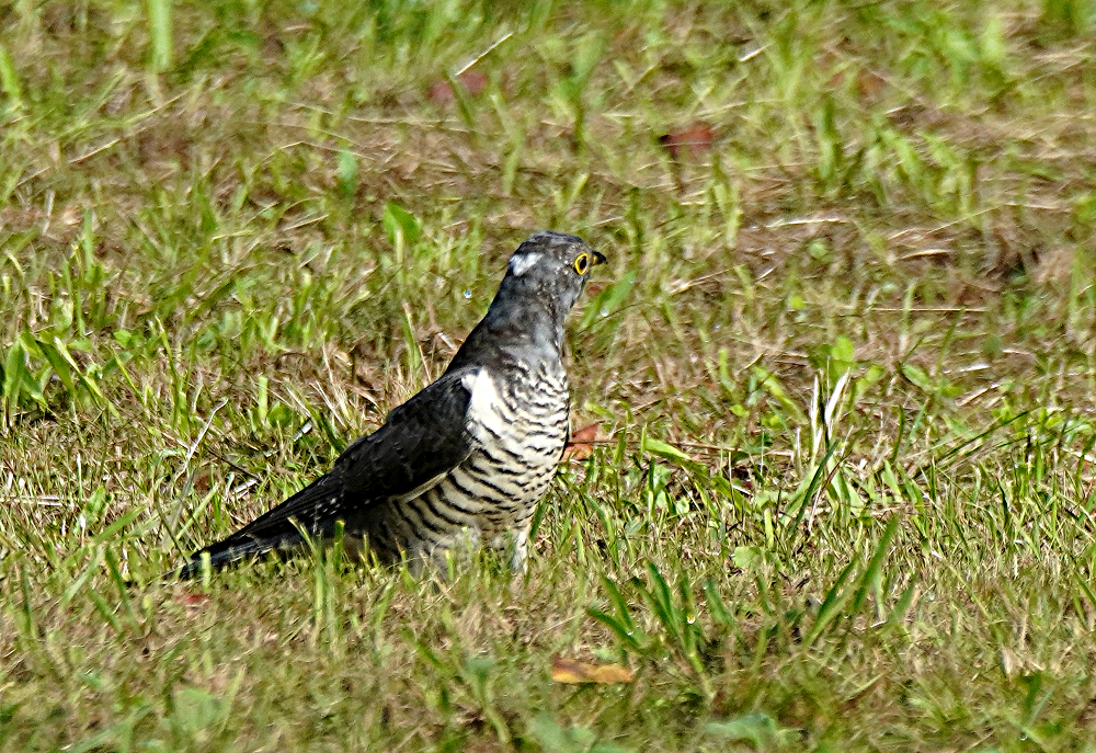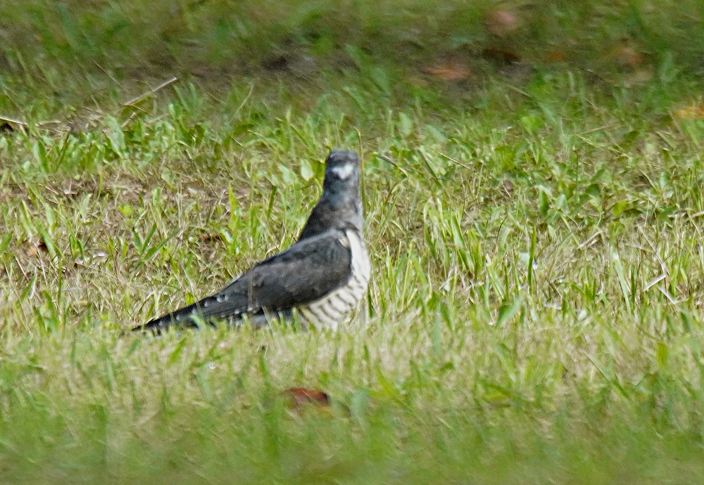 前々回の続きです。 カッコウの幼鳥が地上で佇んでいました。 賑やかだった公園が静まり返ると地面に降りてじっとしていました。 いつもは樹上にいますが地上は珍しいことで以前も一度撮ったことがあります。 この個体は後頭部の白斑がハート型に見えます。 今季はトケンが良く観察されましたがこのところ抜けてしまったのか姿が見られなくなりました。
