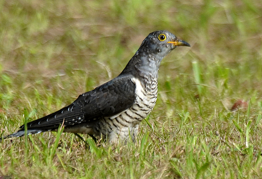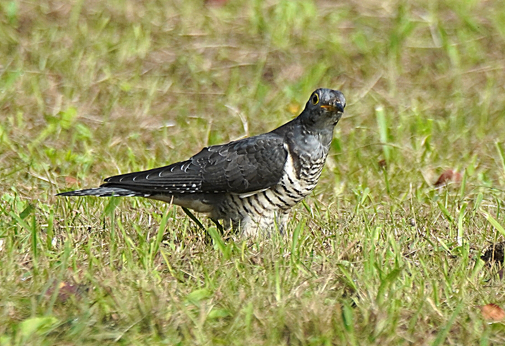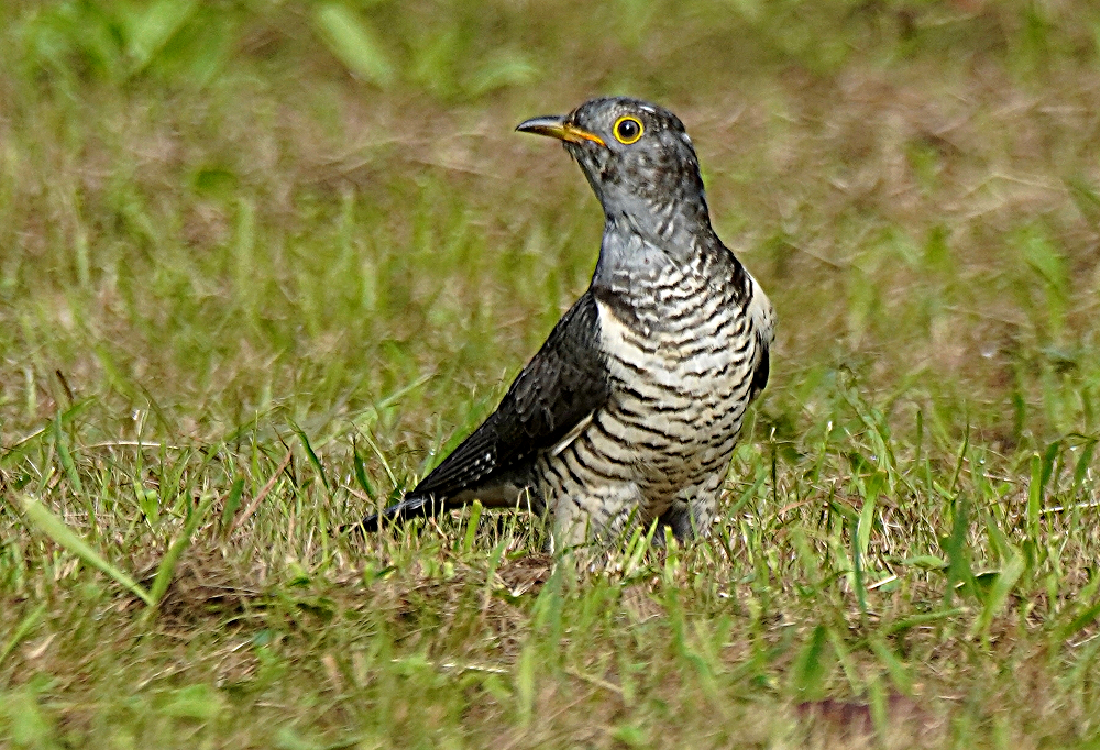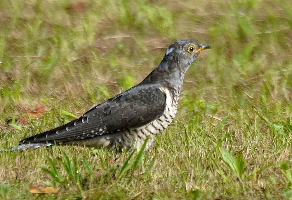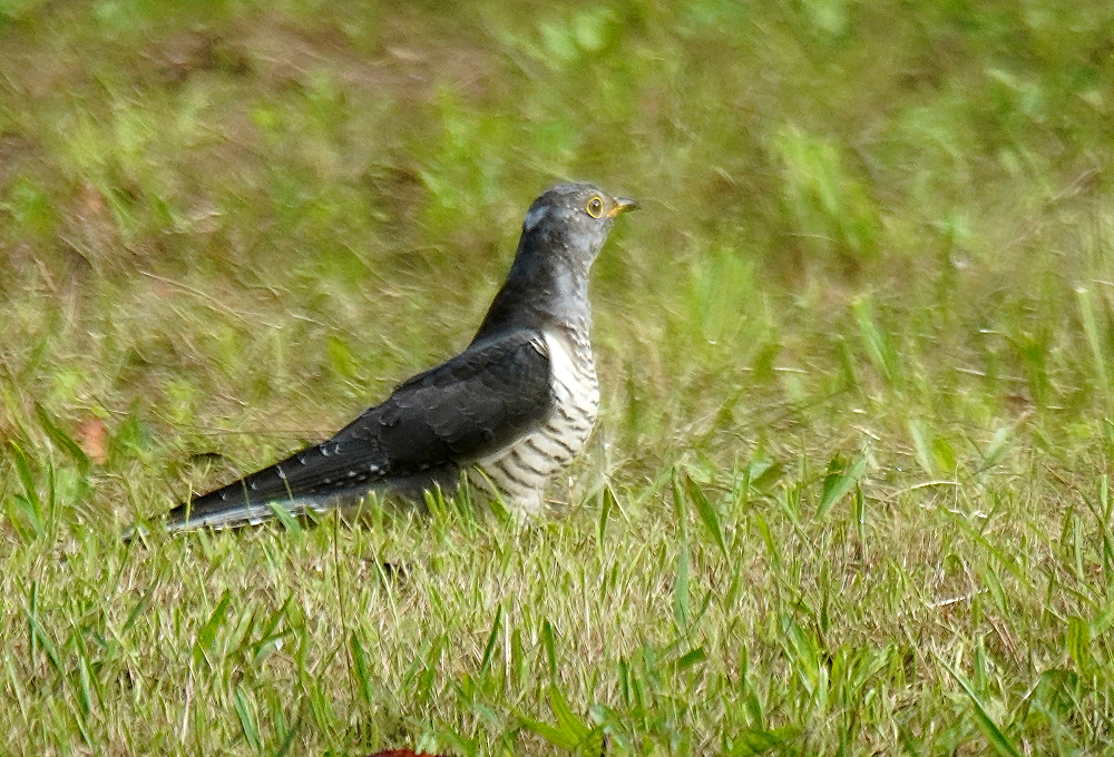 前々回の続きです。 カッコウの幼鳥が地上で佇んでいました。 賑やかだった公園が静まり返ると地面に降りてじっとしていました。 いつもは樹上にいますが地上は珍しいことで以前も一度撮ったことがあります。 この個体は後頭部の白斑がハート型に見えます。 今季はトケンが良く観察されましたがこのところ抜けてしまったのか姿が見られなくなりました。