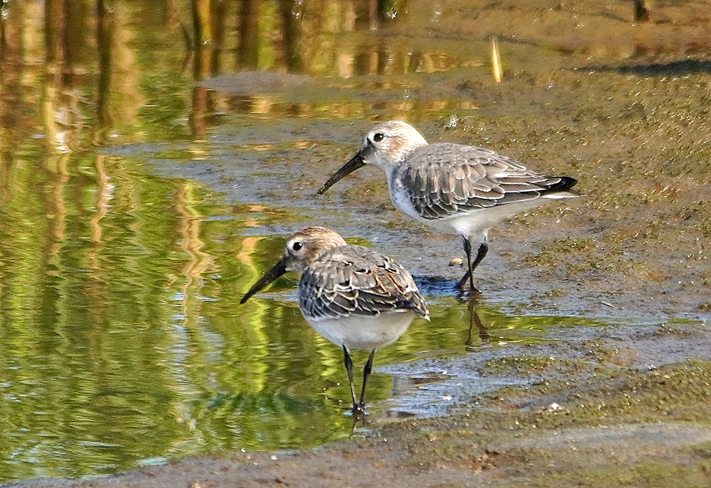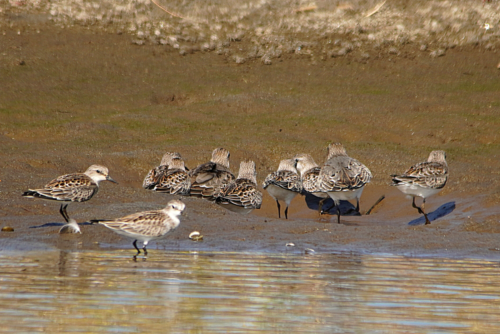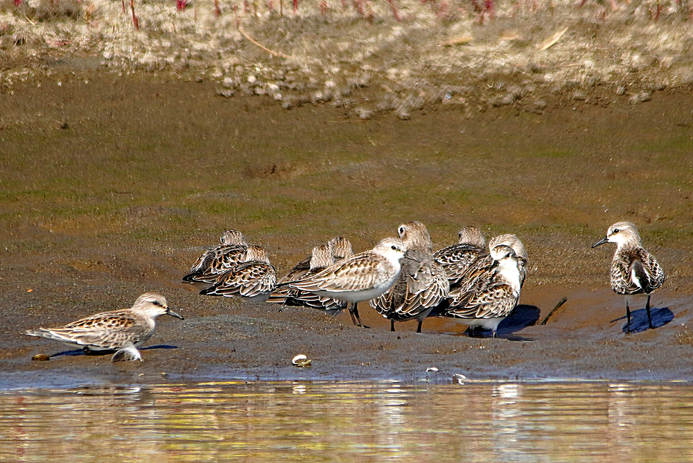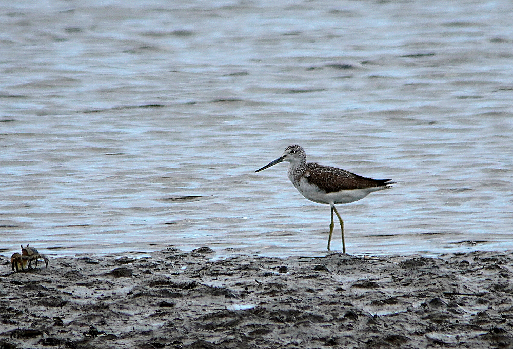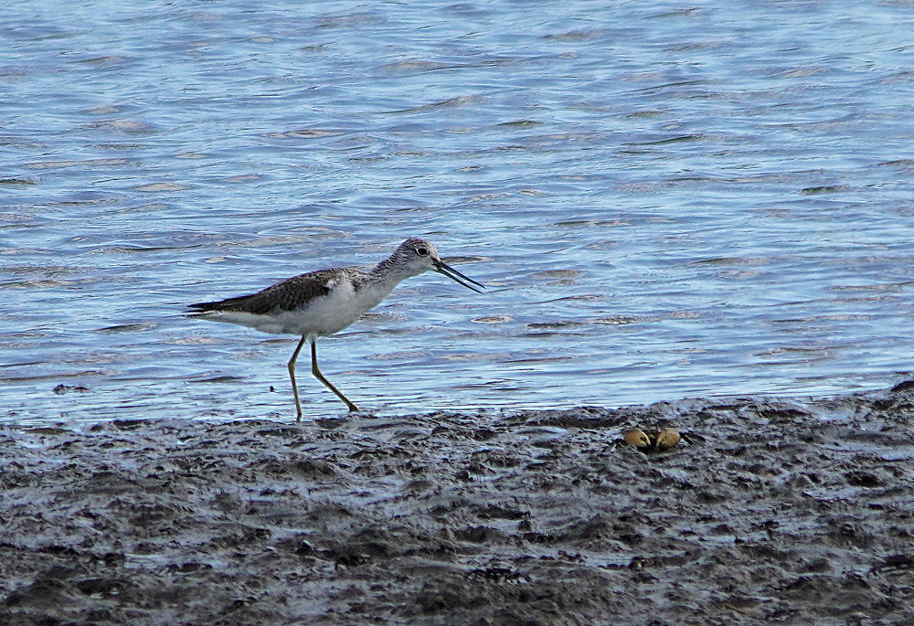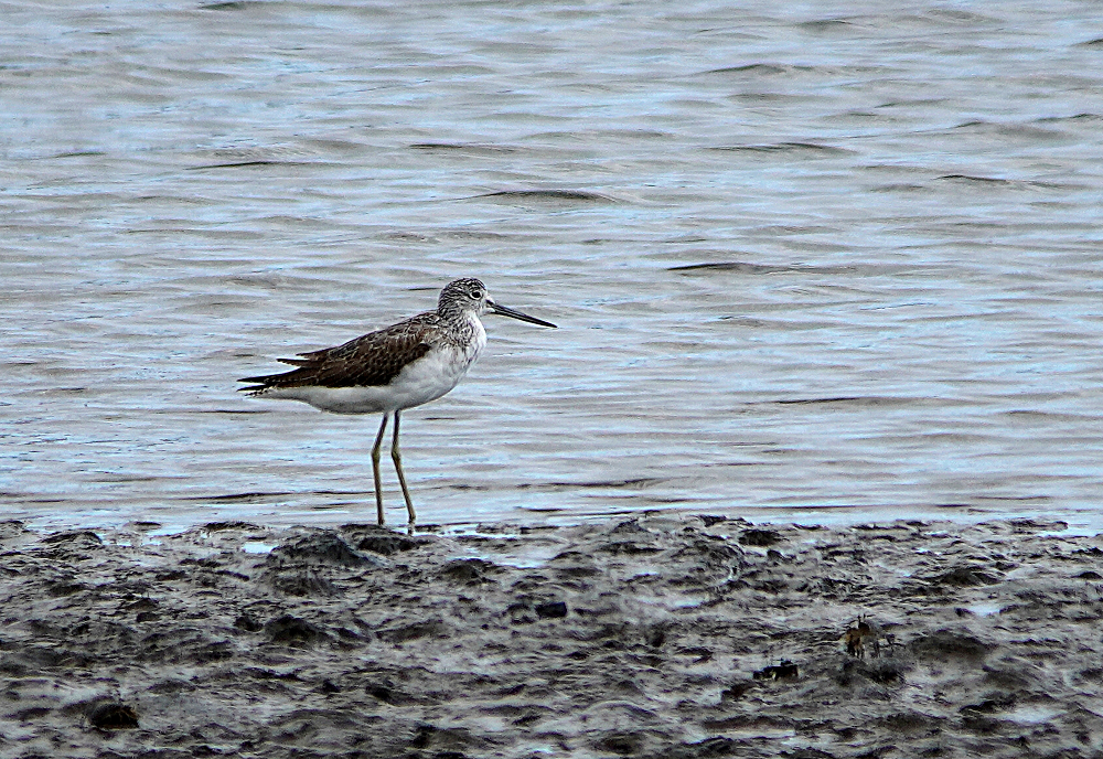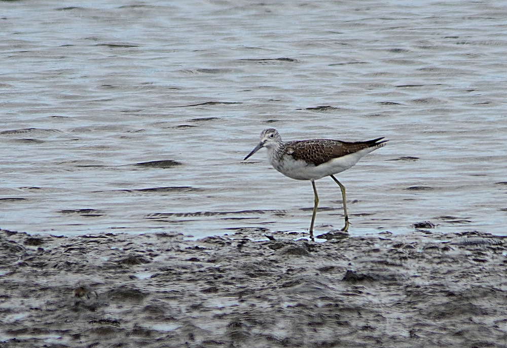 久々に沿岸南部へ行って来ました。 初め鳥の海に寄ったらクレーン作業で進入できません。 見渡しても騒音で鳥の気配がありません。 牛橋公園に行き河の干潟に二羽のシギを発見、遠かったがほかに何もいないので撮ることにしました。 初めコアオアシシギと思いましたが良く見ると白いアイリングがあり嘴も太く白い眉斑がないのでアオアシシギの幼鳥のようです。 大きさは比較するものがいないがコアオくらいの感じです。 シギはアオアシシギの幼鳥、トウネン、ハマシギです。