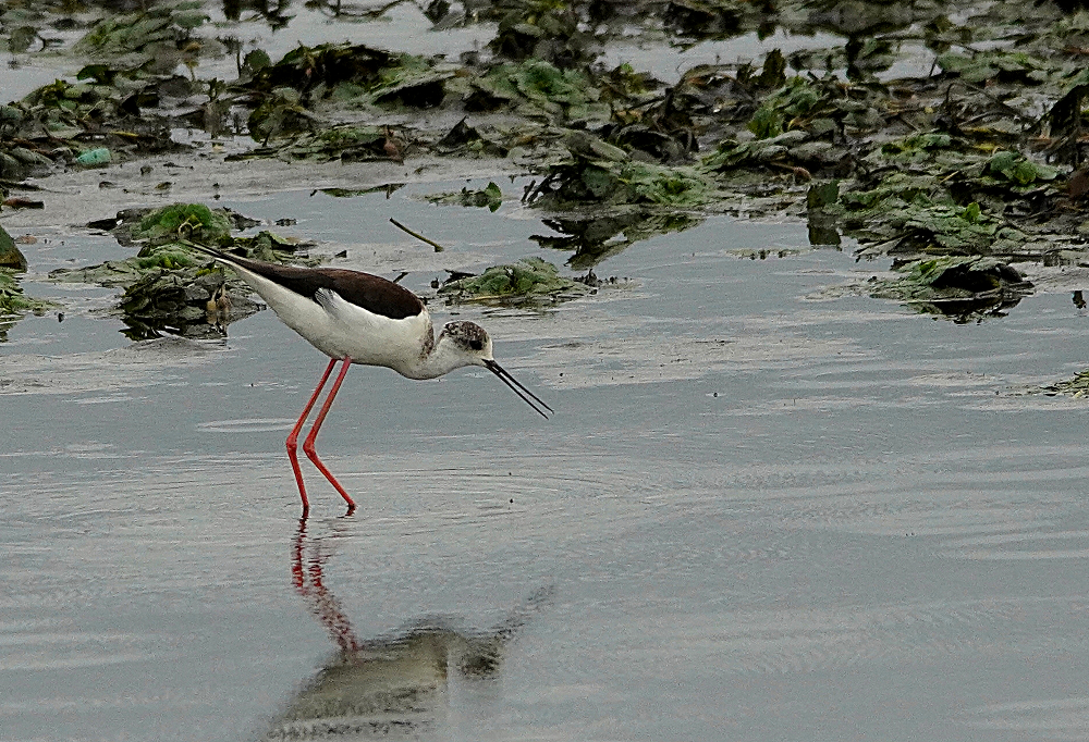 赤沼のセイタカシギとツルシギです