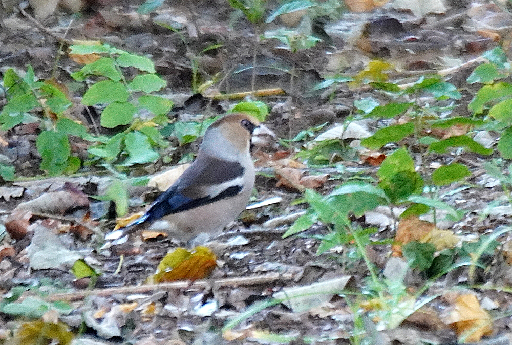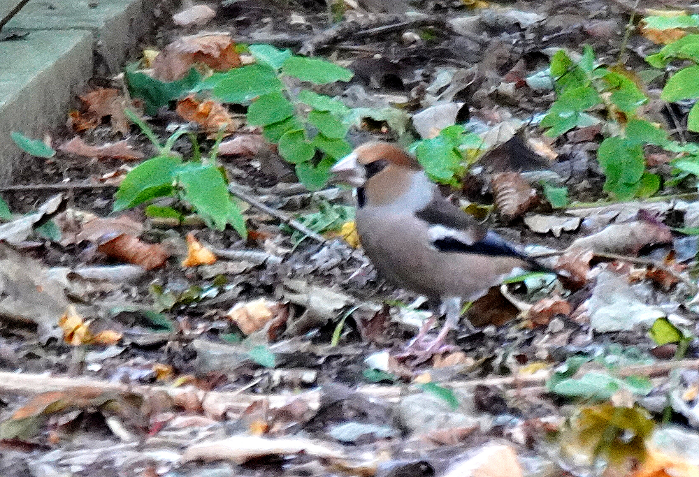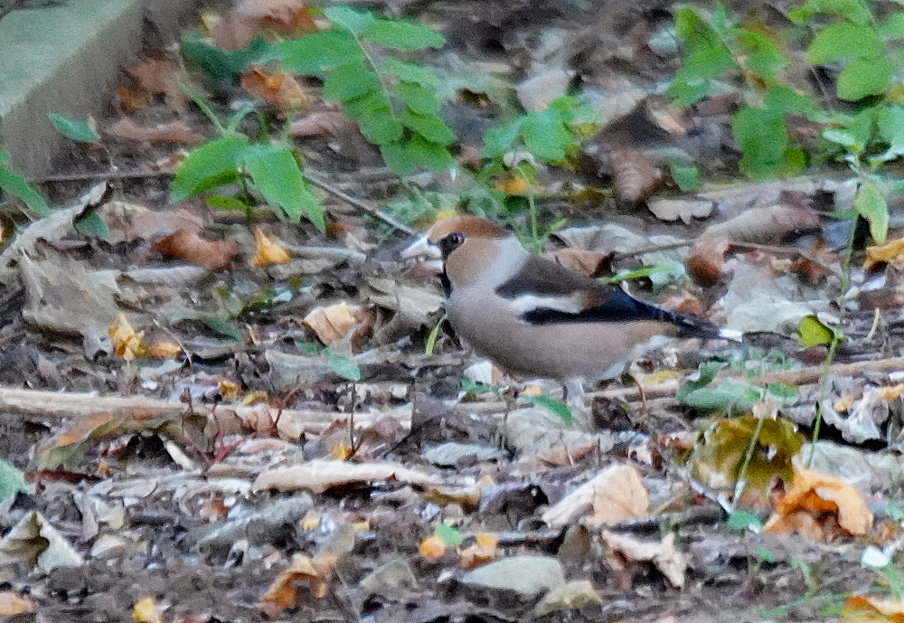 公園でシメが観察されました。 毎年、シメがここで越冬していましたが今季は少し早いようです。 薄暗い所で上手く撮れません。 ムギマキが十日程前に立ち寄りました。 ここでは珍しいことですが薄暗く証拠写真程度です。 野鳥はシメ、アオジ、カケス、エナガ、ムギマキ、キセキレイ、ガビチョウです。