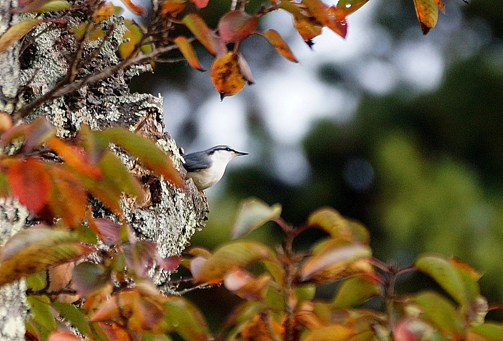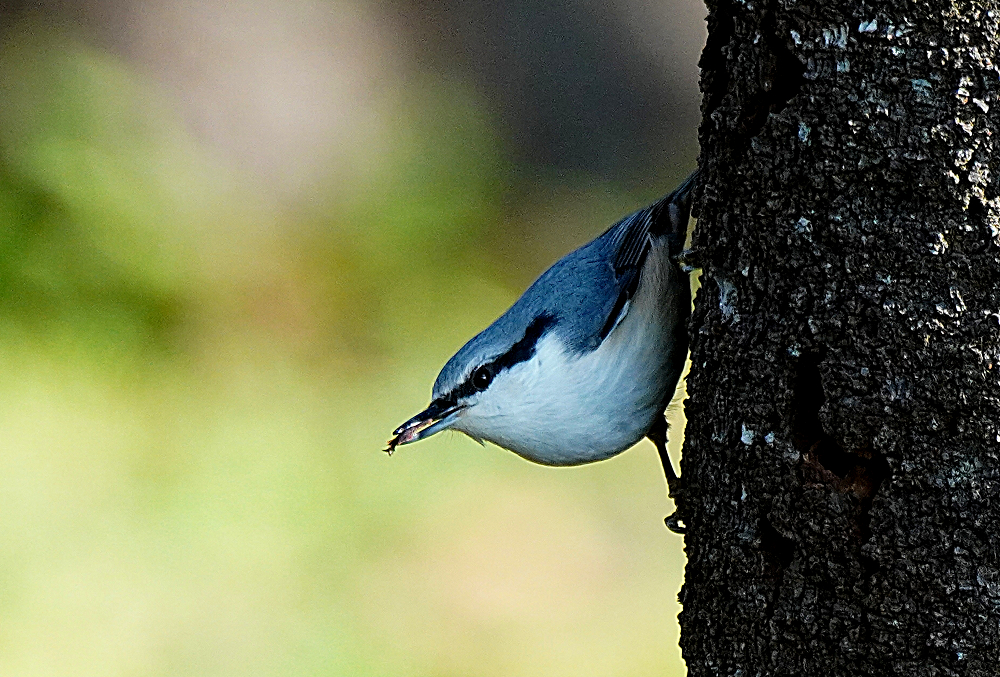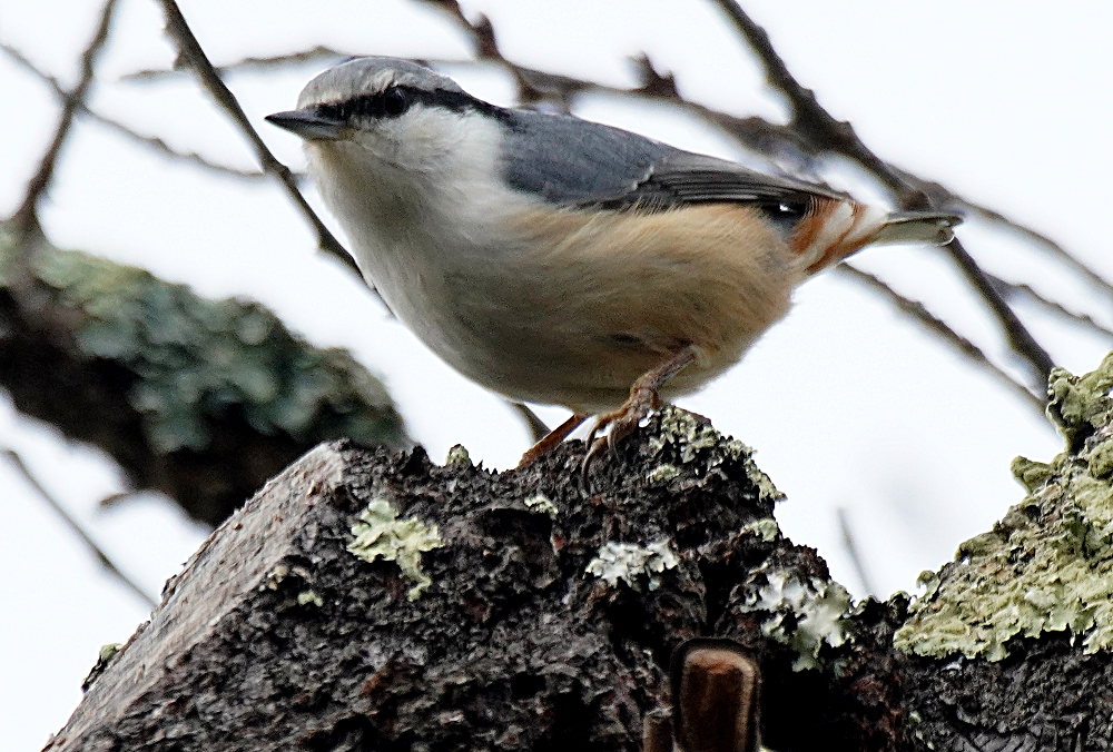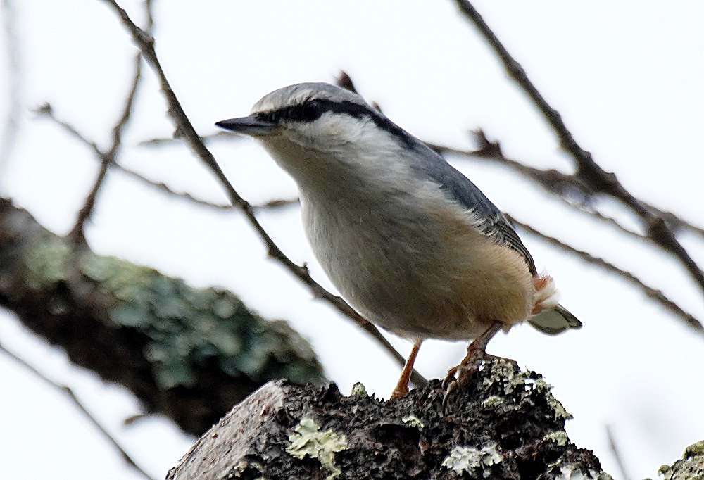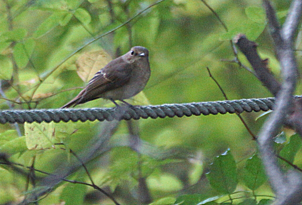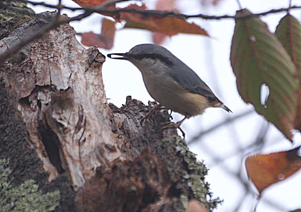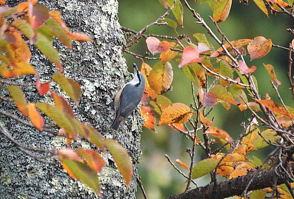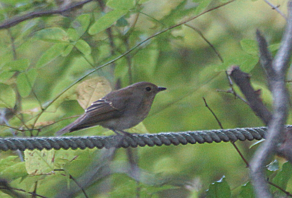 園内でゴジュウカラ数羽が滞在しています。 主に桜の木を飛び回って採餌しています。 ヒガラやコガラも見られる時があります。 ジョウビタキの鳴き声が聞こえますが中々姿を見せてくれません。 薄暗い木々の下にキビタキの幼鳥かメスのようなヒタキ類が現れました。 暗くて良く分かりませんでした。