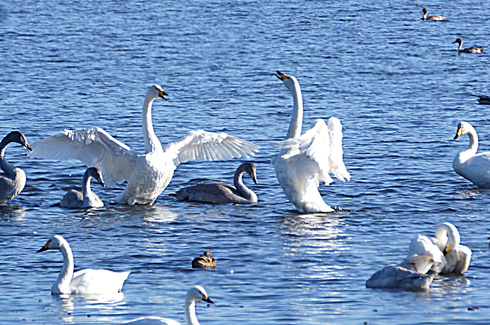 沼周辺を歩いていたらベニマシコの鳴き声がしました。 近くで待っていると葦から突き出た木に止まりました。 ベニマシコのメスでした。 オスの姿はなく一羽だけでした。 アカハラがツグミと一緒に飛んで来て枝に止まりました。 生憎逆光で残念でした。 野鳥はベニマシコ、アカハラ、トモエガモ、ホシハジロとお終いはハクチョウです。