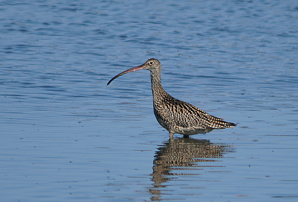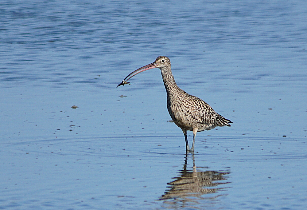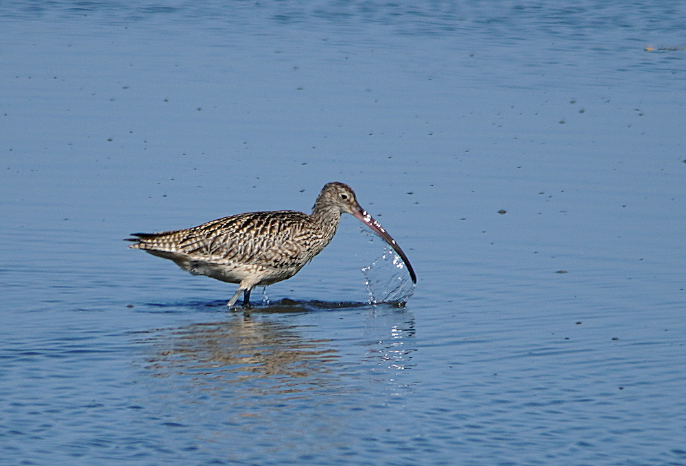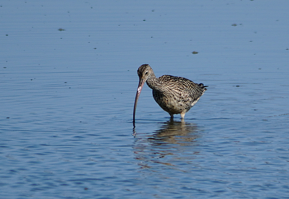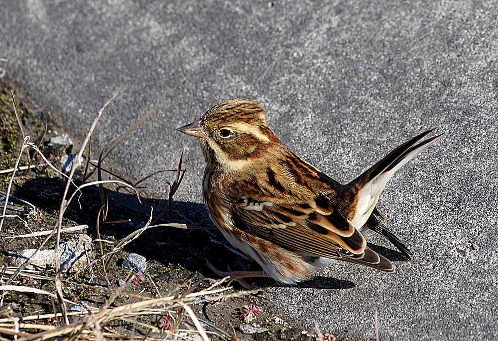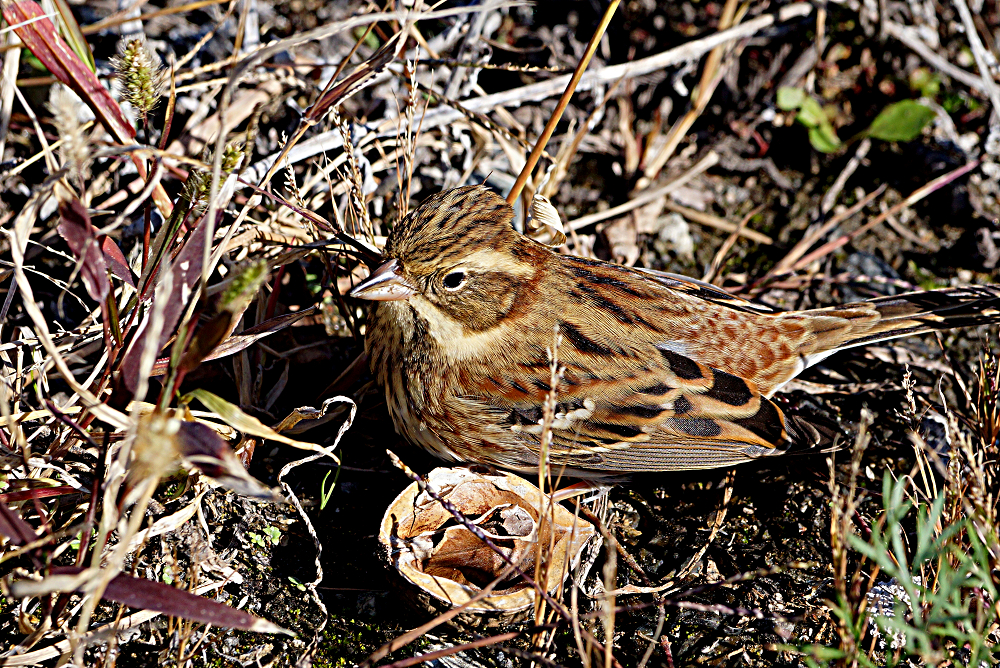干潟でアオアシシギ二羽が採餌中でした。 ほかにシギなどがいないので自由に干潟を動き回っていました。 今月初旬に撮ったホウロクシギです。 潮が満ちてきた浅瀬で採餌中でした。 お終いは道端で草の実を啄んでいたカシラダカです。 近くに寄っても動く気配がなく夢中で食べていました。
