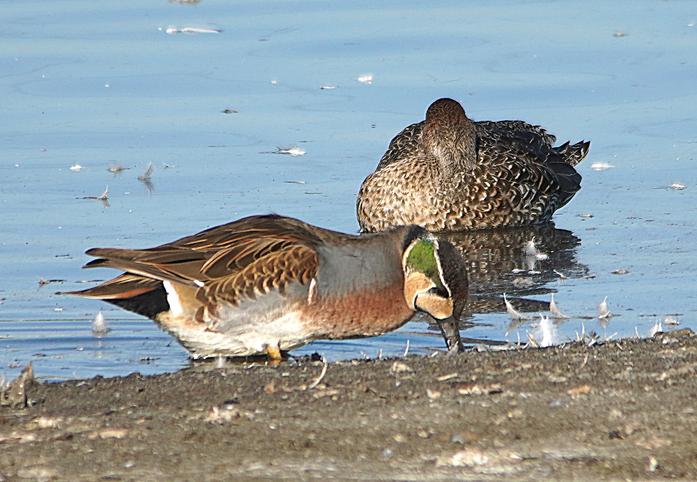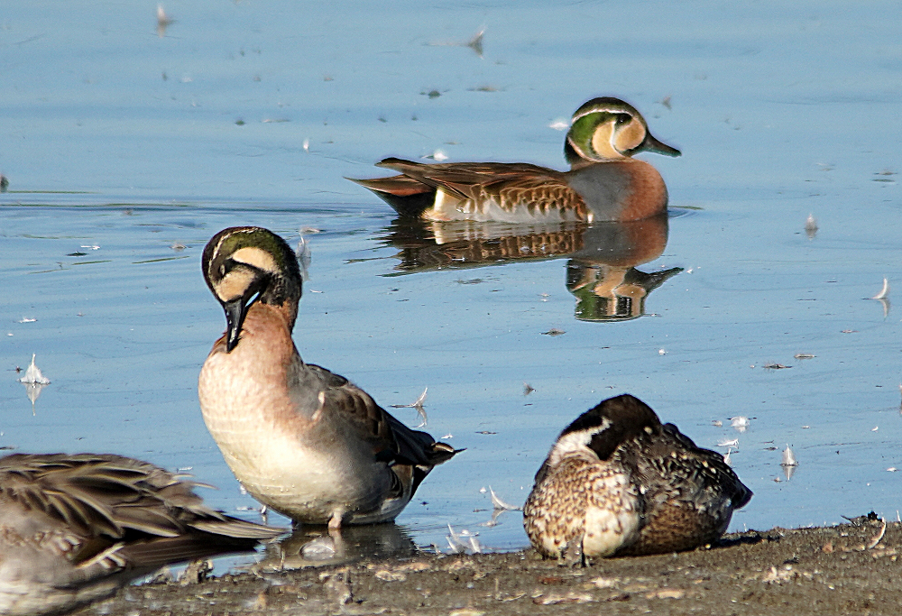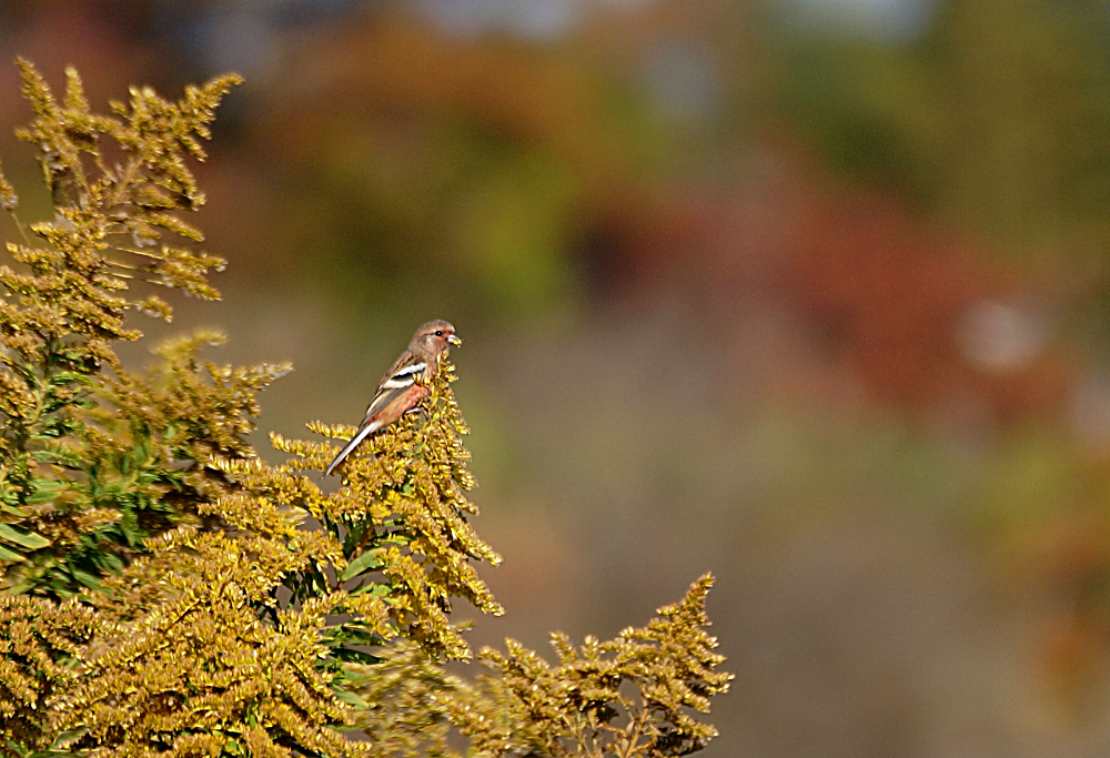 トモエガモが陸(おか)に上がって休んでいました。 いつもは沼の中央に浮いていますが時折上がることもあるようです。 カモ類が多いのでトモエガモだけは写せません。 今季はトモエガモが今のところ少ないです。 ハジロカイツブリが潜水してました。 ここでは数が少ないが観察されます。 お終いは沼の淵のセイタカアワダチソウにやって来たベニマシコです。