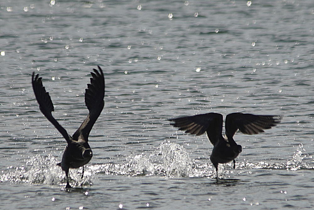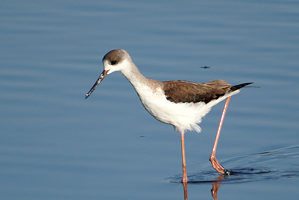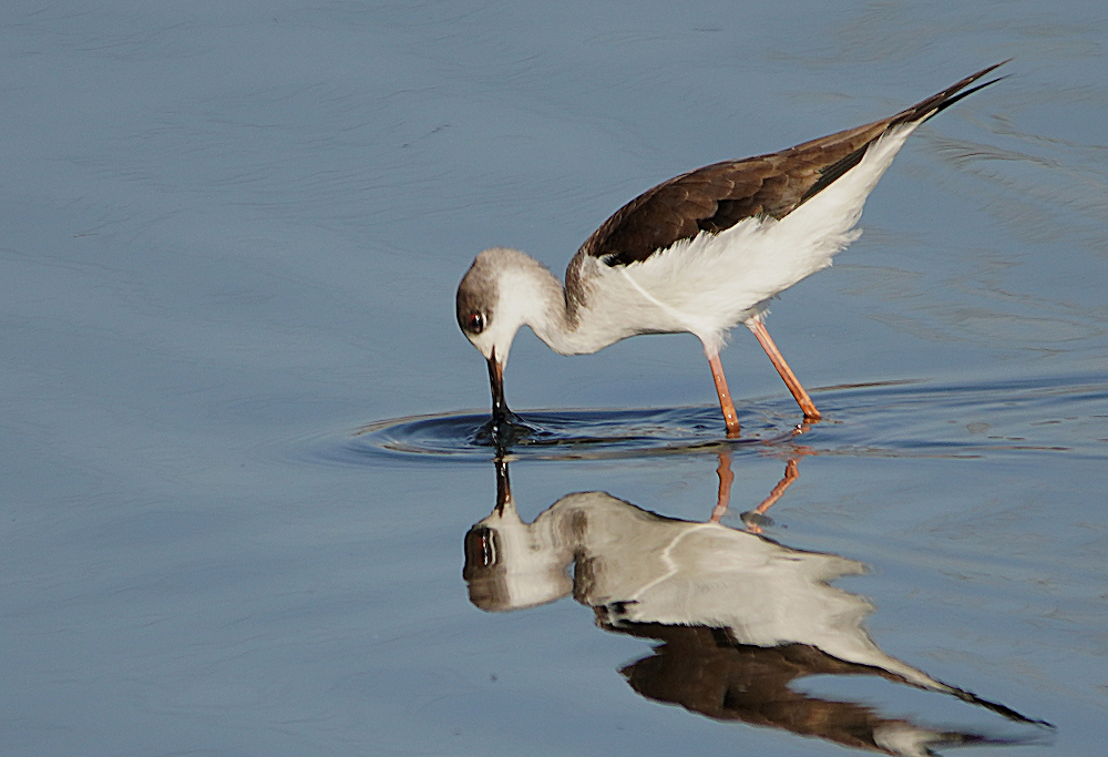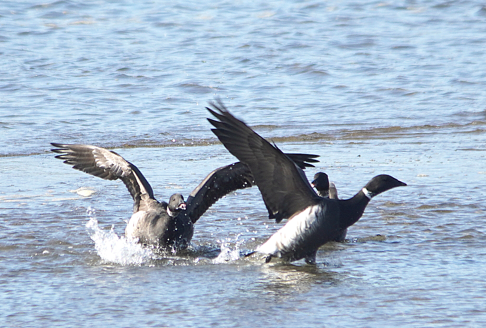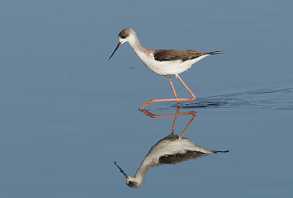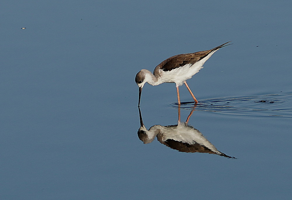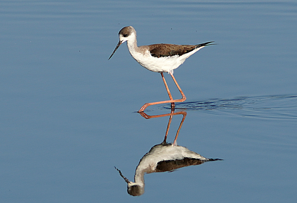 河口にコクガンが二十羽程いました。 潮が満ちてくると少しづつ移動を始めます。 いつも休んでいる場所は順光ですがここは逆光です。 沖合に飛び立つことなく休んでいました。 赤沼にセイタカシギ一羽がいました。 カモ類が餌場に行っているので自由に採餌してました。