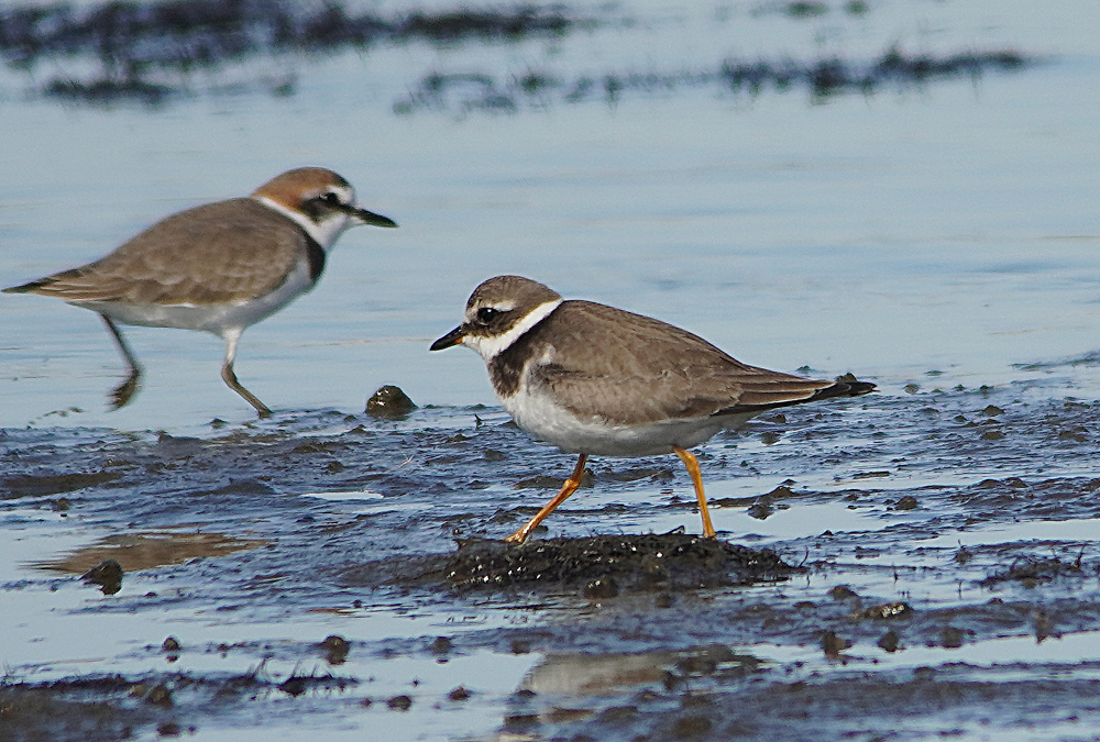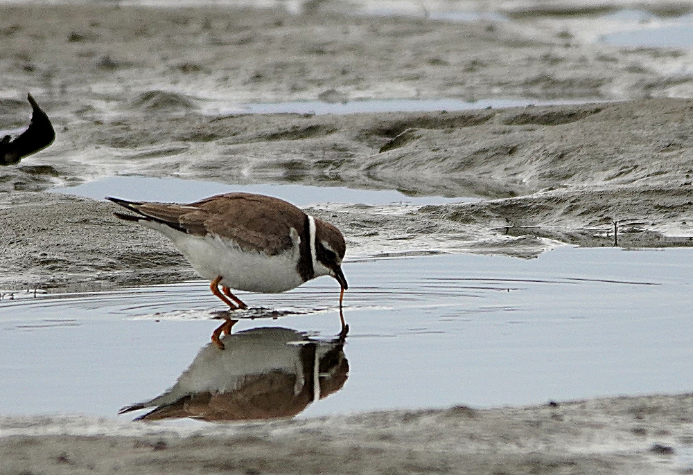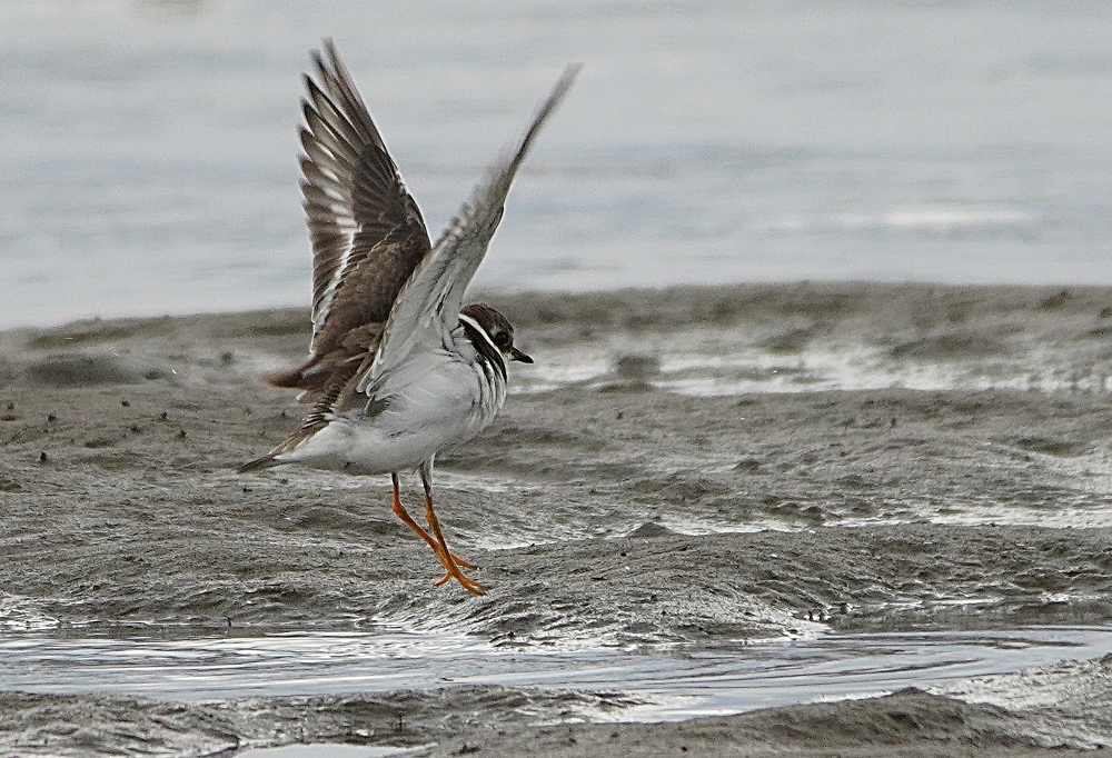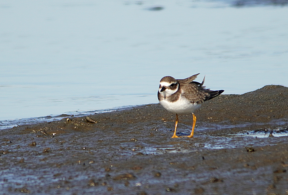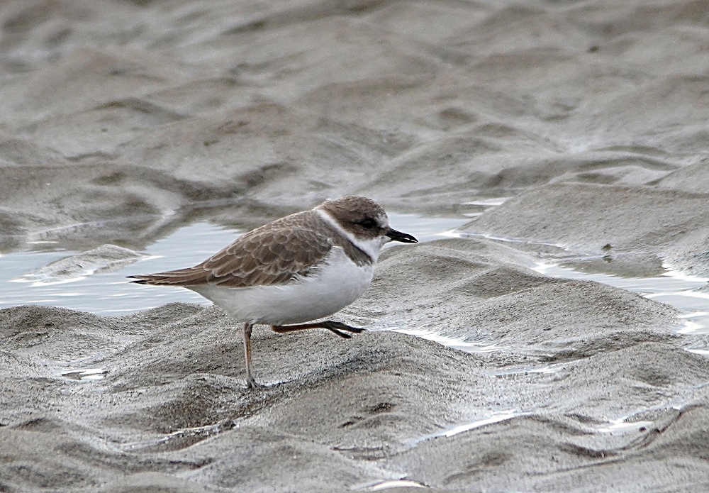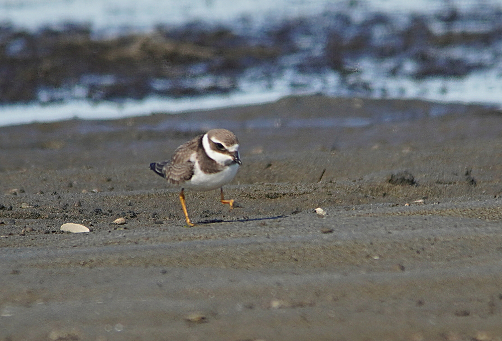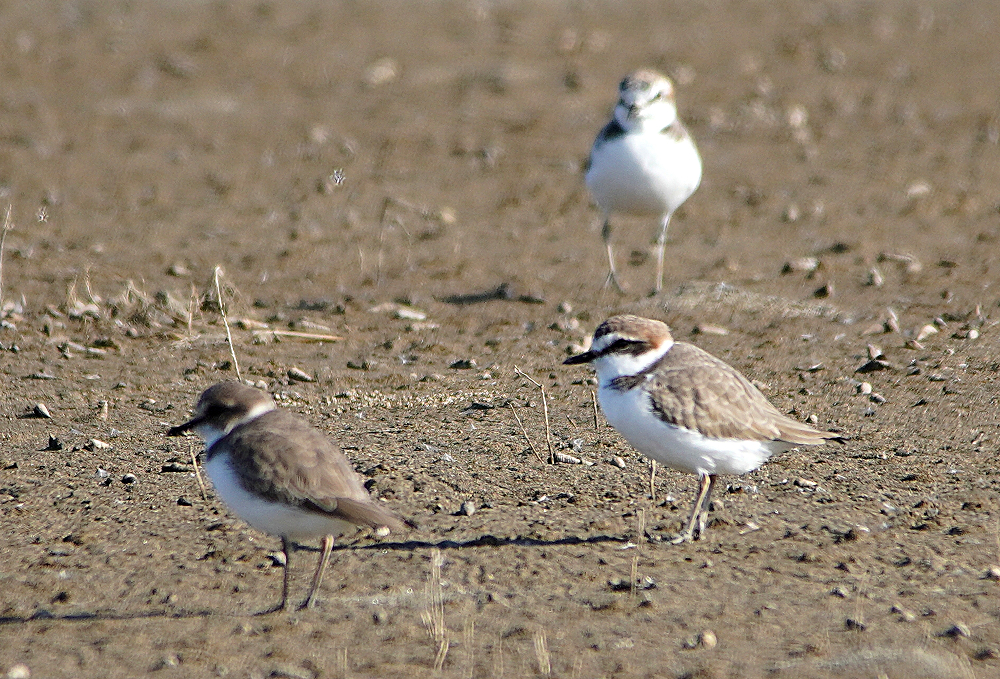 ハジロコチドリがシロチドリの群れに一羽交っていました。 教えてもらわないと普通は探しませんし分かりません。 ハジコチは橙黄色足がポイントでシロチドリより大きく区別ができます。 コチドリより大きくアイリングは目立ちません。 また、コチドリは夏鳥でこの時期はいないので間違うことはありません。 お終いはシロチドリです。