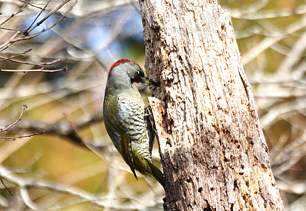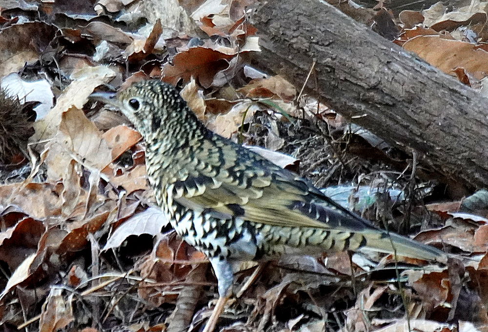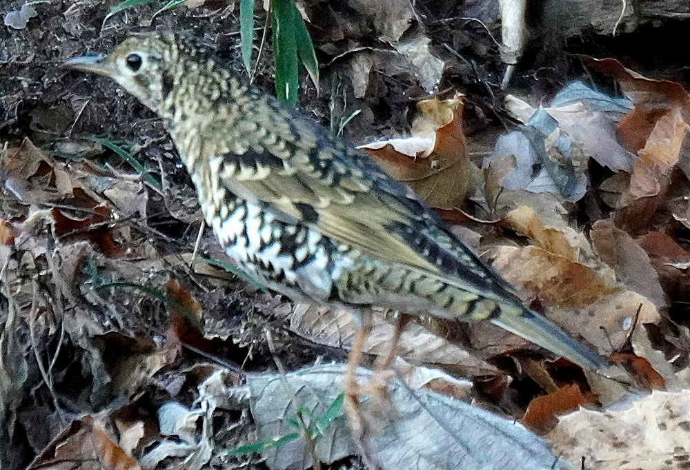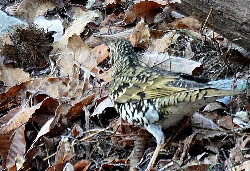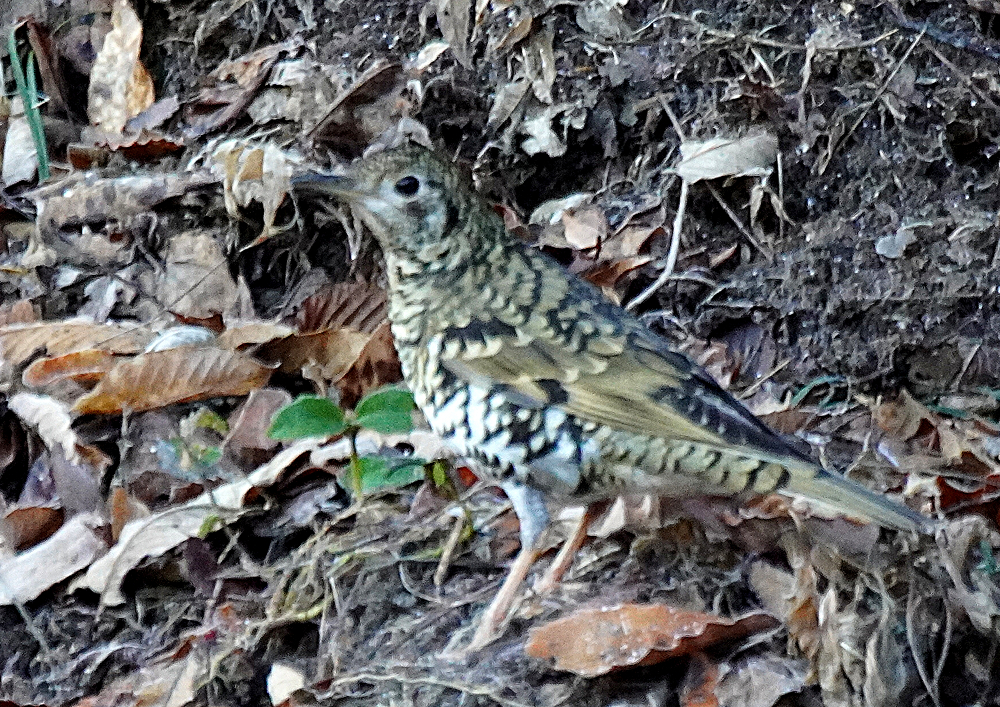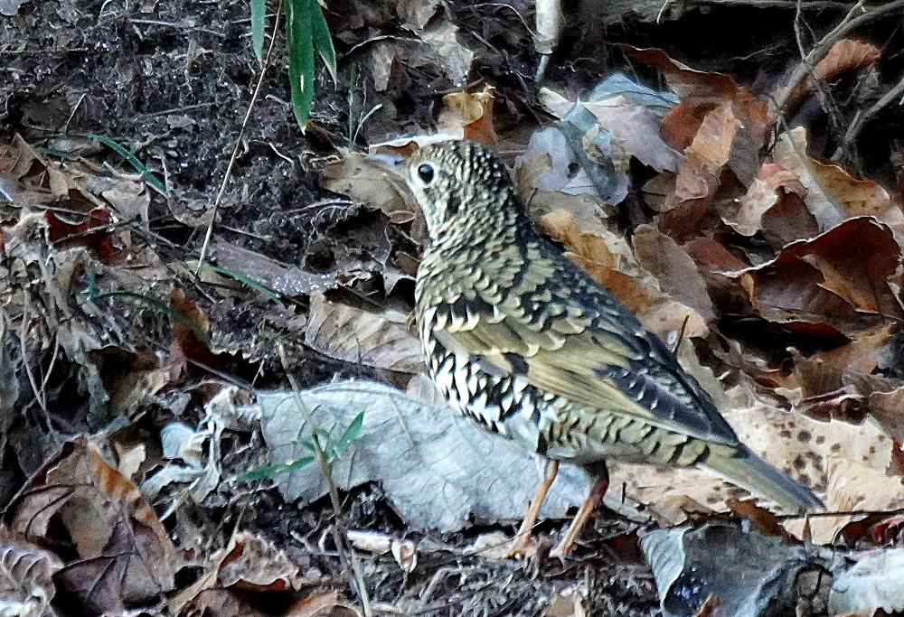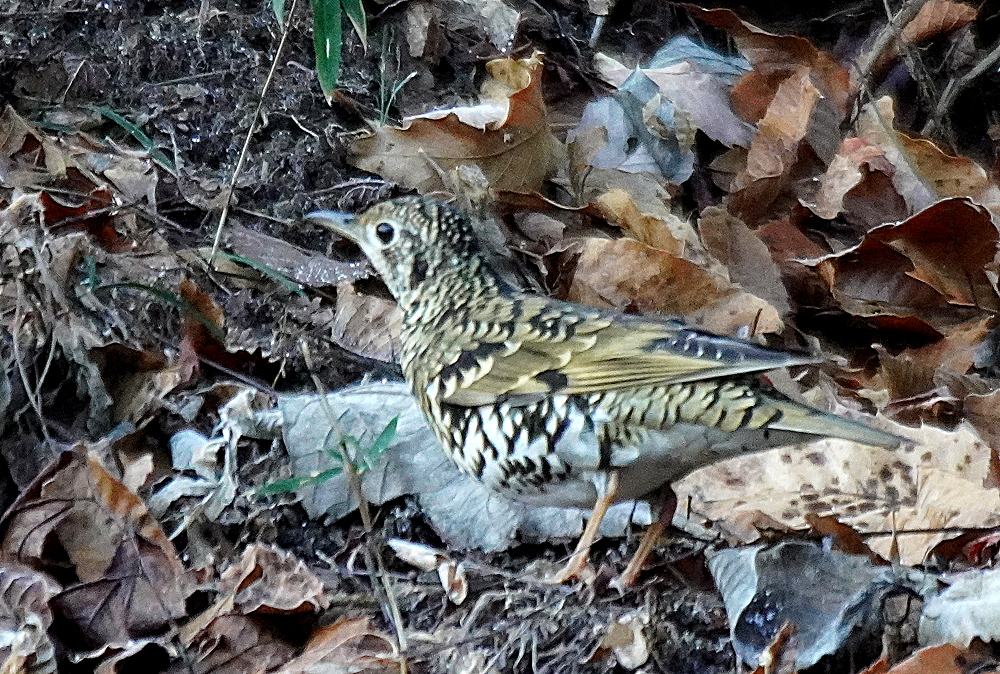 朝、林道を歩いていたら前方から林の中に鳥が飛び立ちました。 初めヒヨドリかと思いましたが体色が違うので良く見るとトラツグミでした。 トラツグミは久々で野鳥が少ない中やっと出会えたので何とか撮りたいと思いました。 しかし、手前の木が障害となり少し動いたら飛ばれてしまいました。 トラツグミ、キクイタダキ、アオゲラ、アカゲラと続きます。