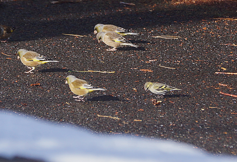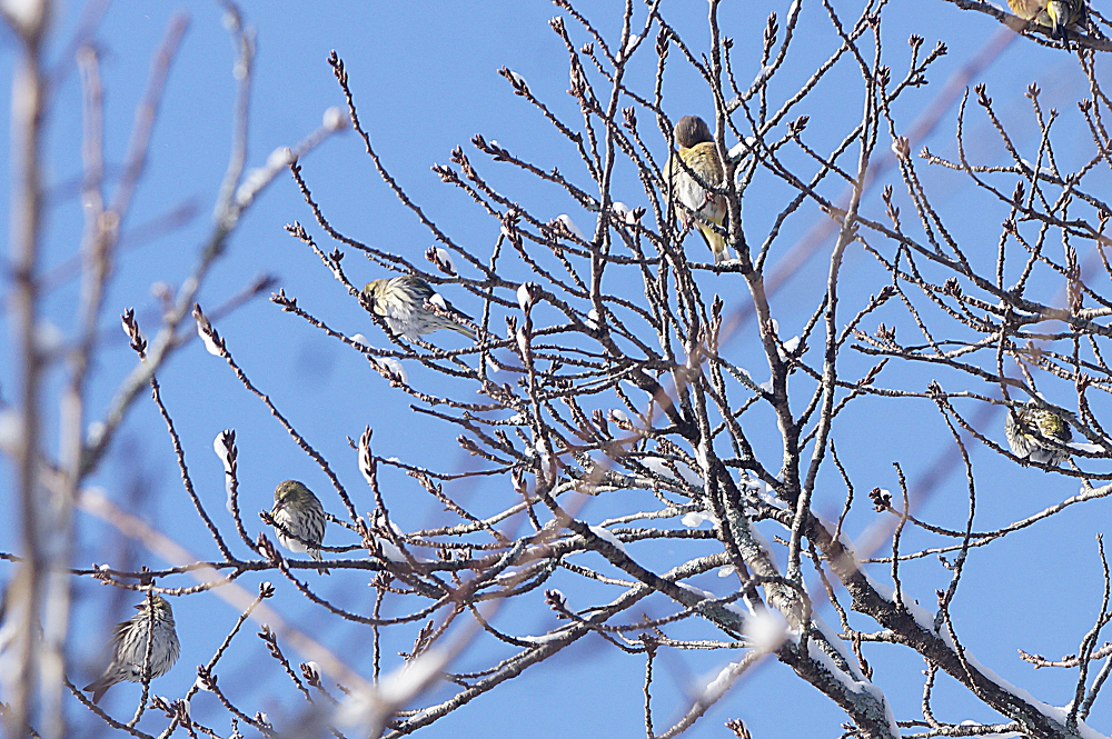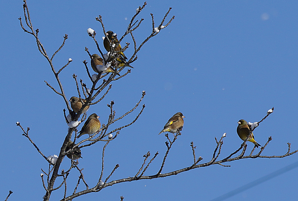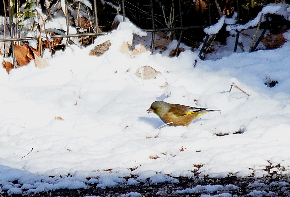 雪が降ったので公園に行ってみました。 雪が融けて地肌が出たところではマヒワやカワラヒワ、オオカワラヒワが降りて採食しています。 コガラやシジュウカラは枯草にぶら下がり餌を探しています。 野鳥はマヒワ、カワラヒワ(オオカワラヒワ)、アオジ、ジョウビタキ、ヒガラ、シジュウカラです。 お終いはフユザクラとスマホで撮った雪景色です。