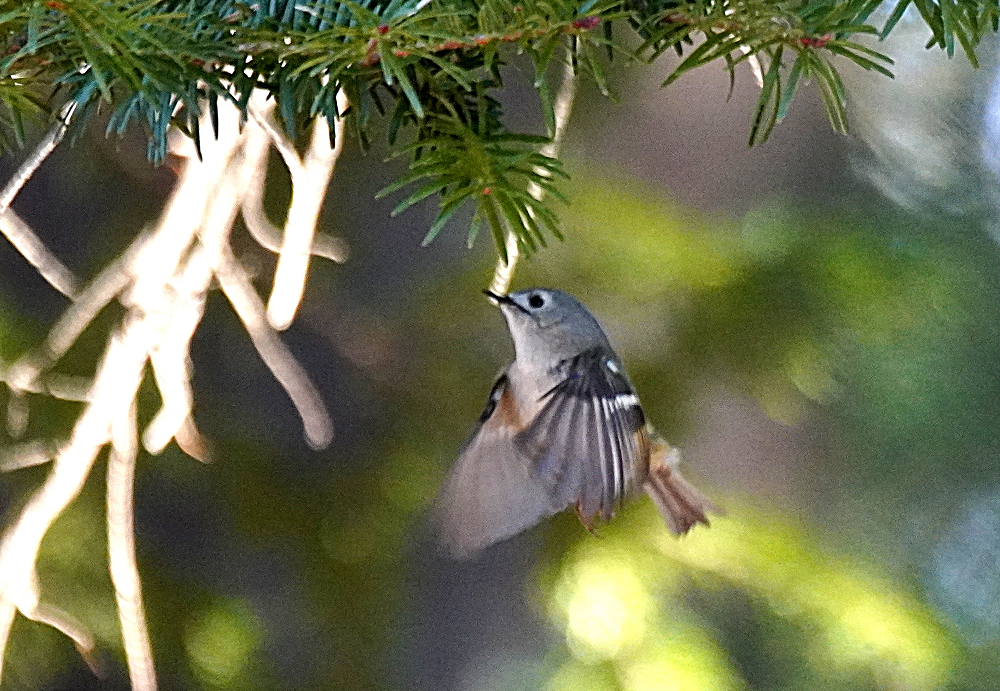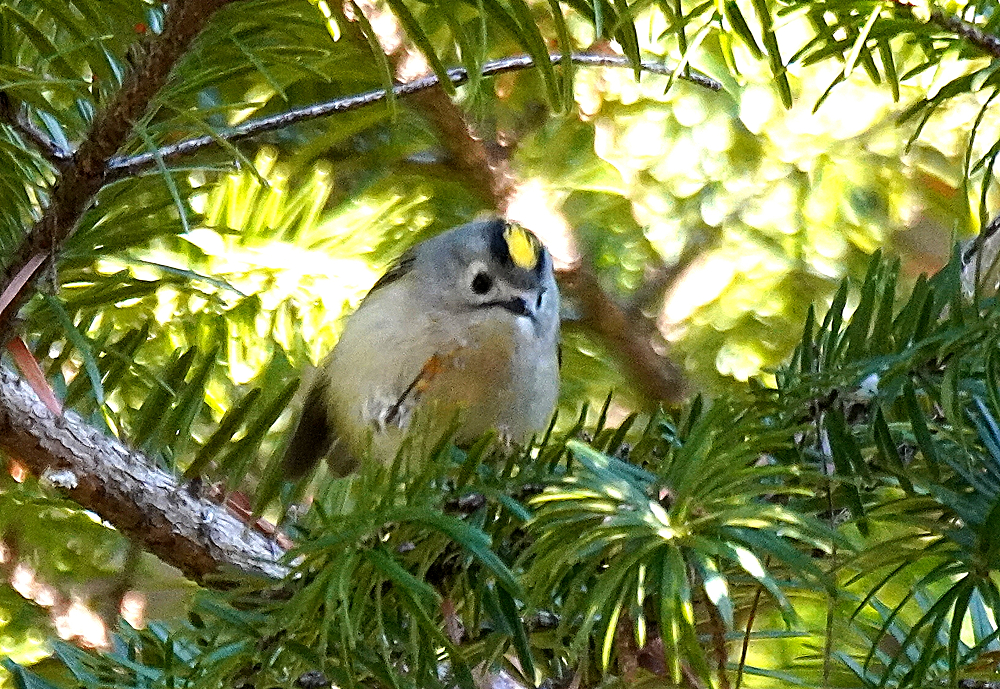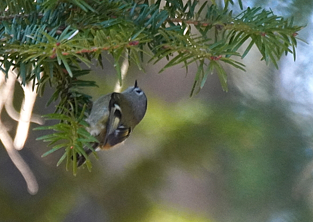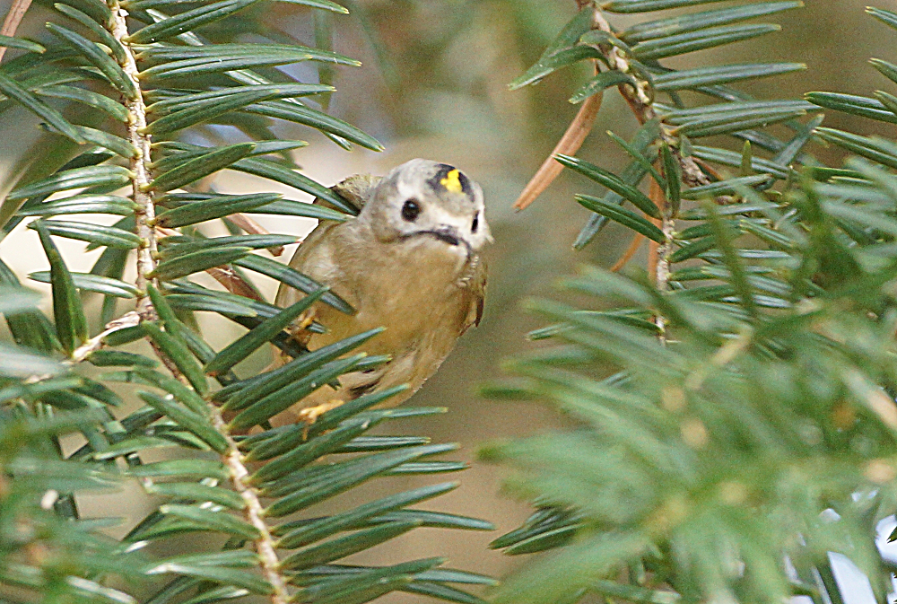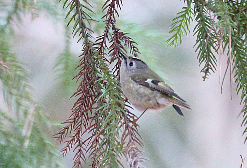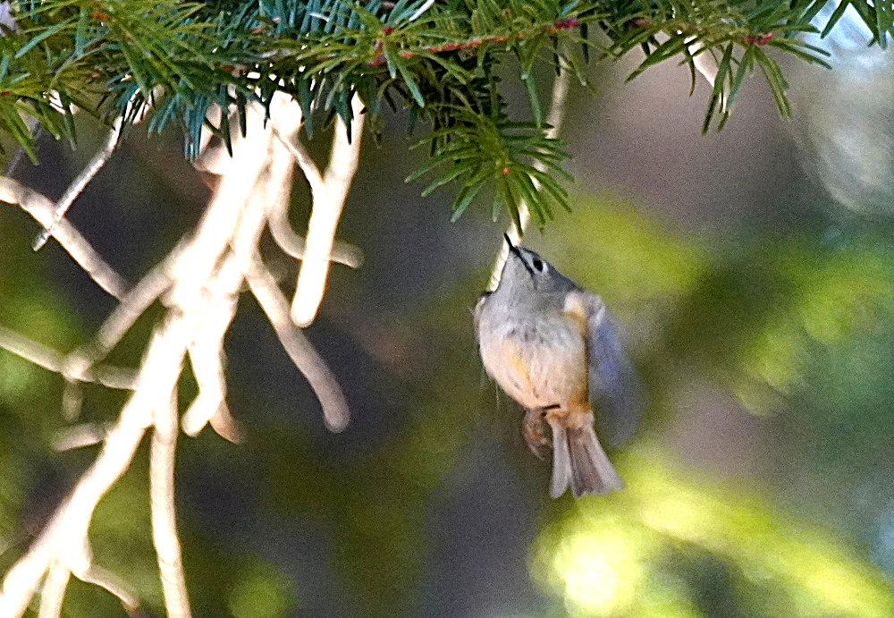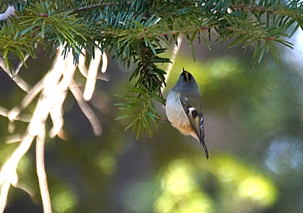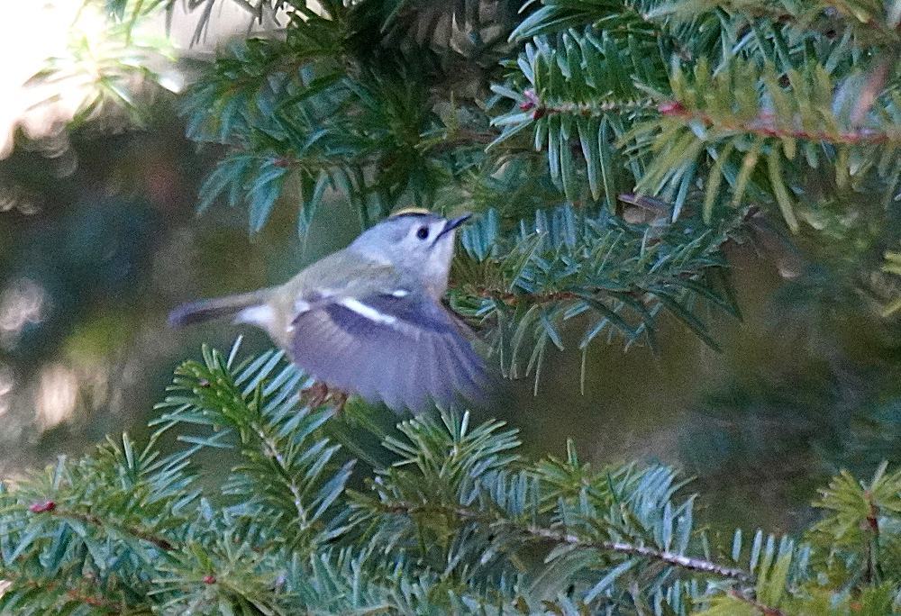 樅ノ木でキクイタダキがホバリングしながら餌を探していました。 木の中に入り込むと暗くなり表に出ると天気の良い日は葉の陰が写り込んで難しいものです。 でもこの公園では久々にキクイタダキが観察されました。 嬉しいことに長い時間付き合ってもらいました。 キクイタダキはここ数年間余り出会うことがなかったが今季は良く観察されています。