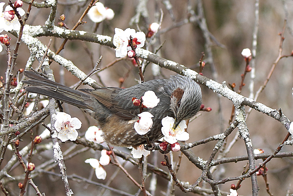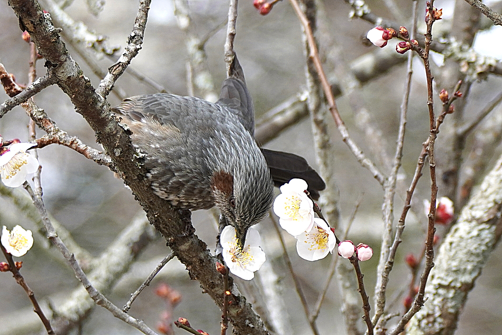 三神峯公園と言えば桜ですが今数本の梅が咲いています。 その梅の花にウグイスでなくメジロでもなくヒヨドリが来て蜜をなめています。 ヒヨドリがいるとメジロなどが来ません。 桜の開花にはまだまだ早いですが蕾を撮って来ました。 12枚目が蕾ですがこのところ気温の低い日が続き開花が予想より遅れるとか・・・お終いはアカゲラです。
