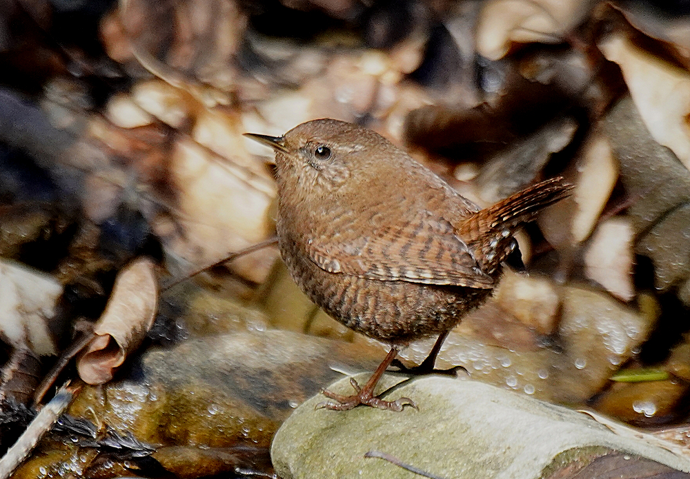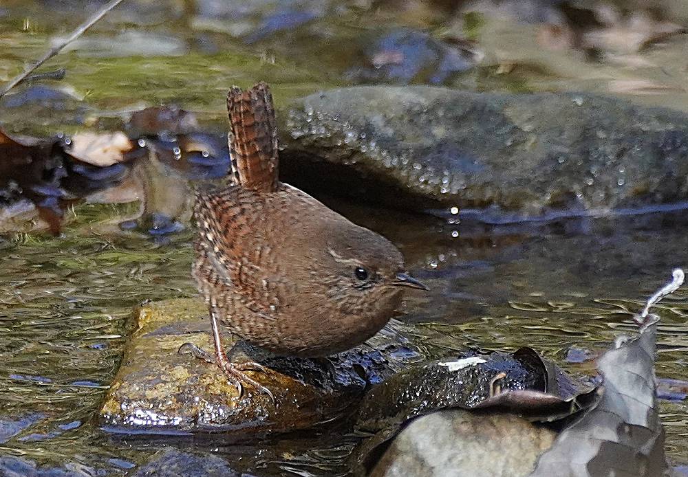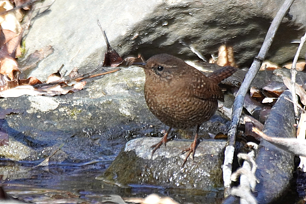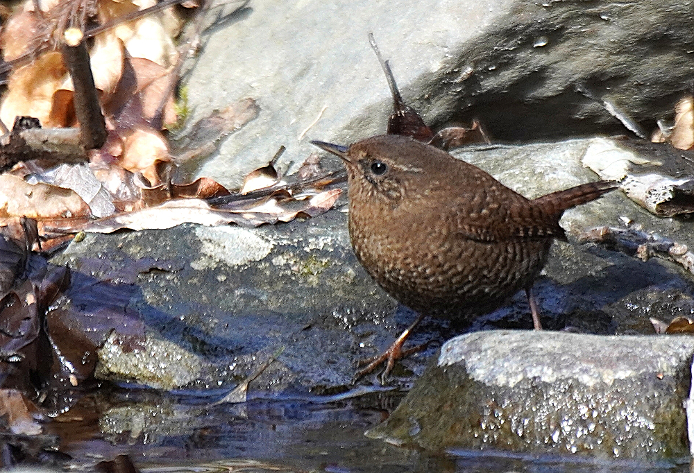 久々のミソサザイです。 ミソサザイの鳴き声がしても姿を見ることがなかったがこの日は長く鳴いていたので待っていると現れました。 藪から沢に降りたので行ってみると隠れたようで見つかりません。 静かにしているとやはり出てきました。 ただ、沢の流木などに入り込むので中々捉えられません。 只管チャンスを待つばかりです。 その内に近くまで来たので運良く撮れました。