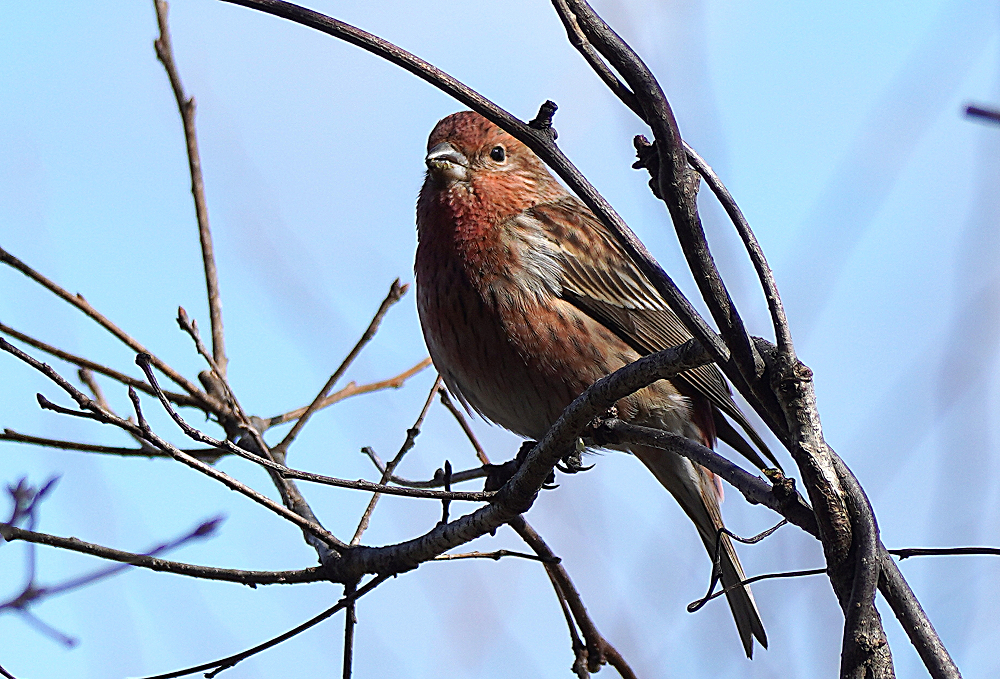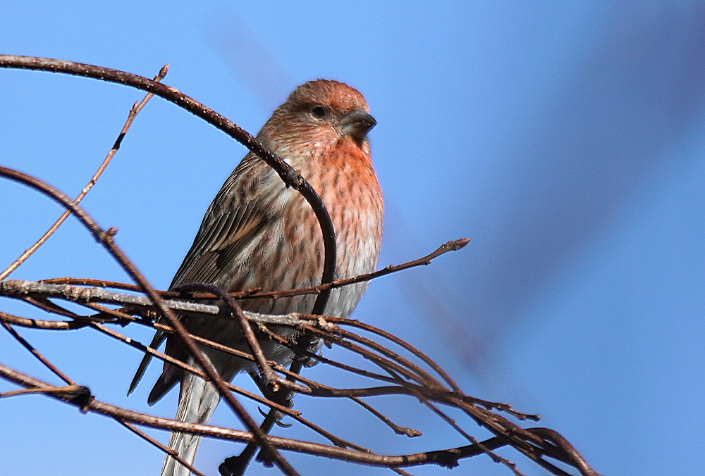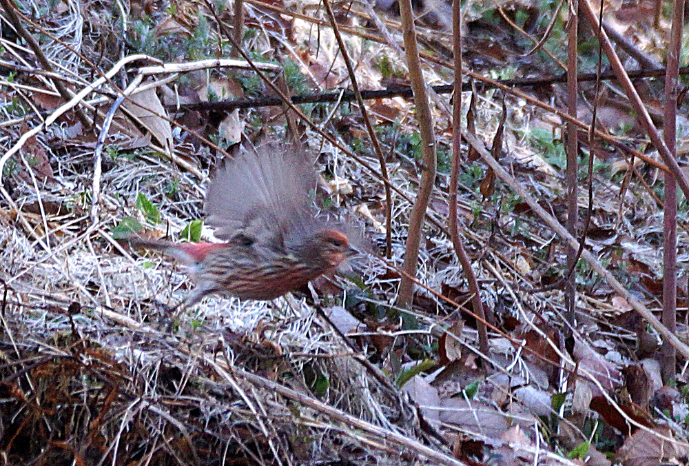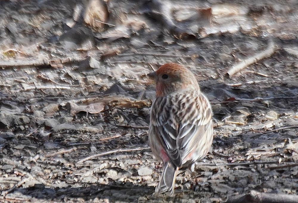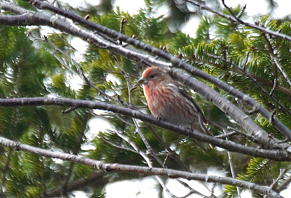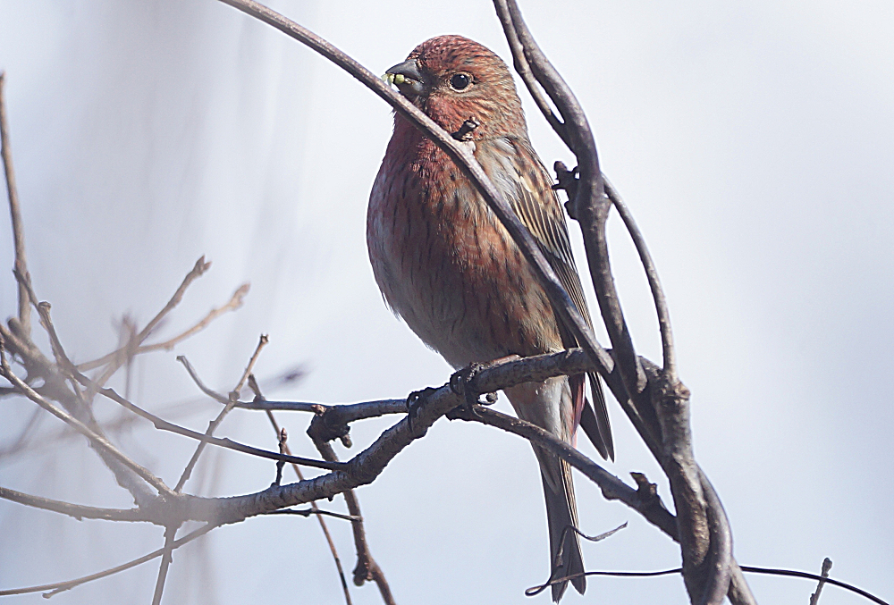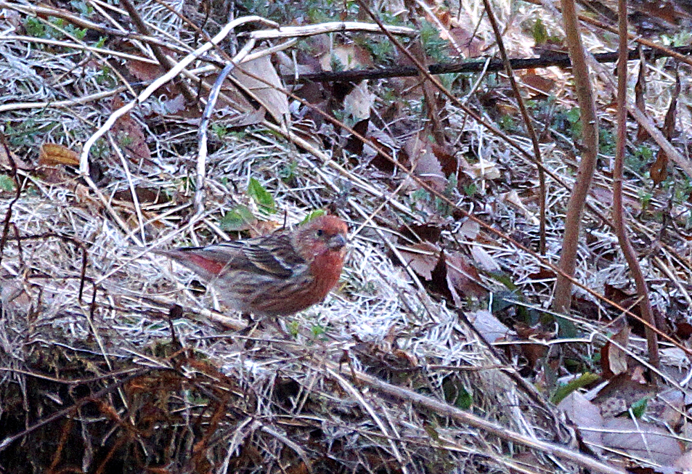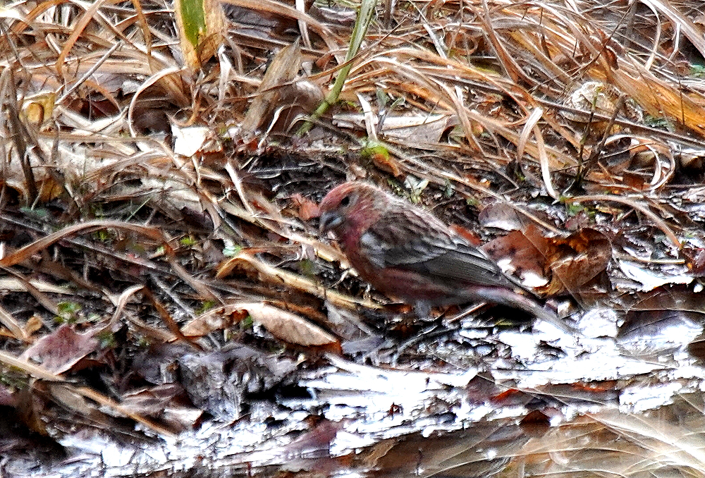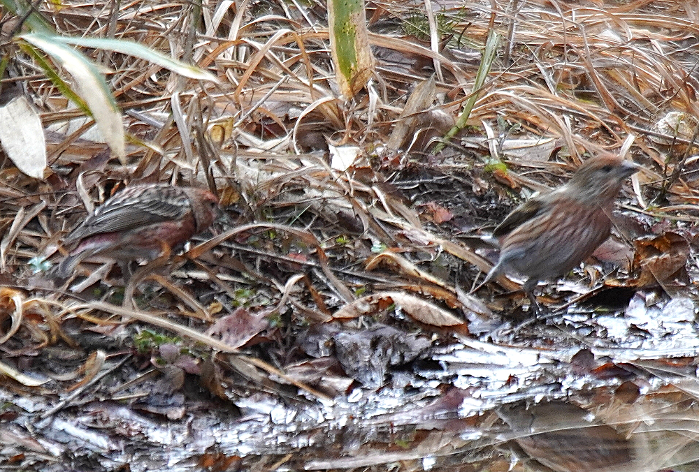 オオマシコの情報を頂きました。 野暮用で数日後に行ってみました。 ヤマハギが自生していましたが実は既になく少し遅かったような気がしました。 それでも萩の下で落ちた実を食べていたようですが直ぐ飛ばれて数日通いました。 やっと見つけたところは崖地の雑木の中で新芽を啄んでいました。 ごちゃごちゃしていて上手く撮れません。 でも、数年振りのオオマシコに出会い嬉しかったです。