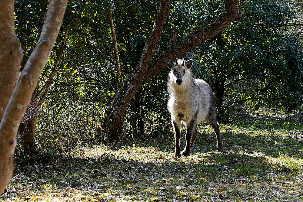 林道を歩いていたらニホンカモシカが姿を現しました。 カモシカは一年振りで昨今出会いが少なくなりました。 此方をじっと見ていたが軈て向きを変えて森の中に消えて行きました。 数日前に蕾だったカタクリが開花しました。数株が咲き出し蕾も出ているので今月下旬には沢山咲くことでしょう。 ニホンカモシカとアオイスミレにカタクリの花です。